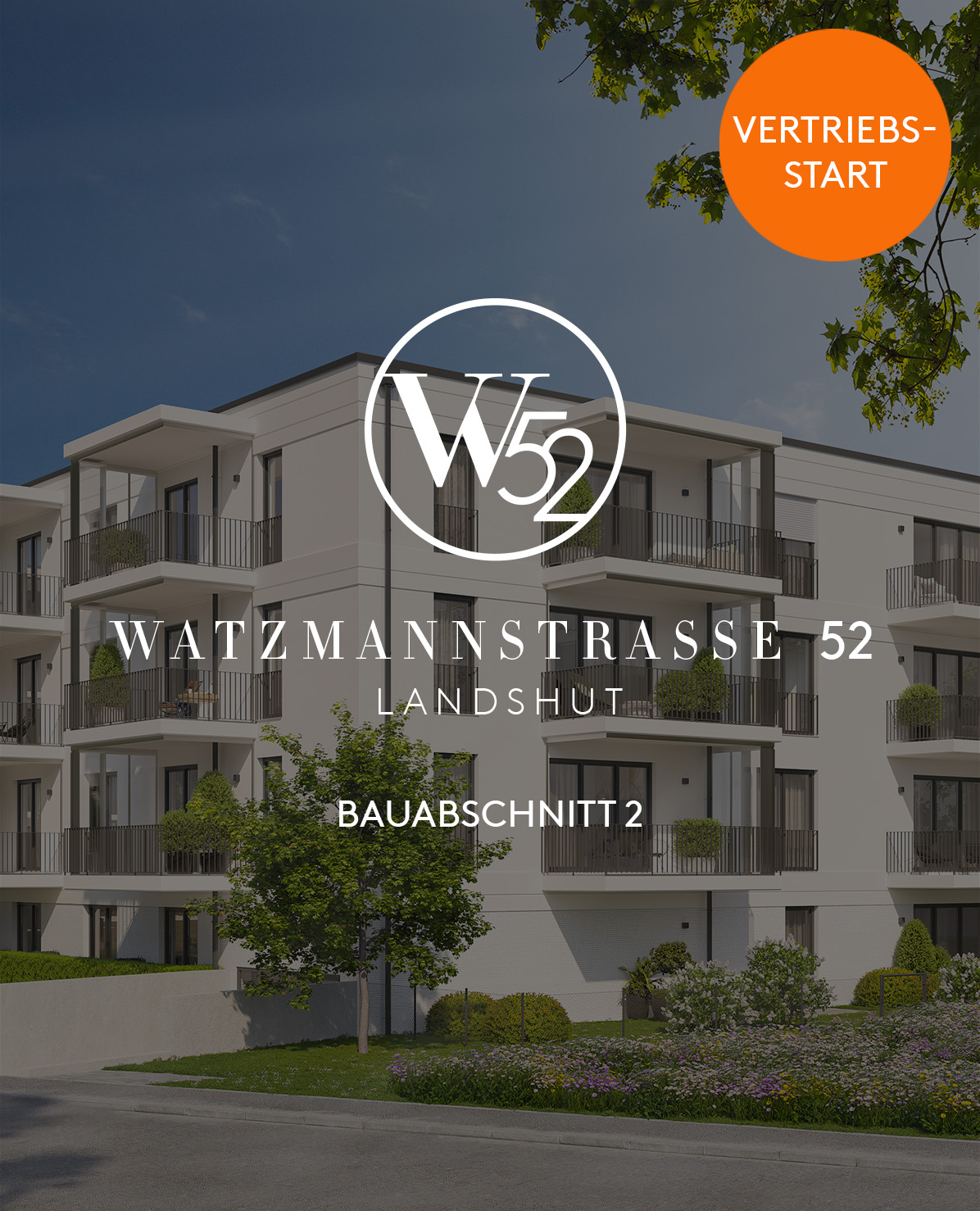 WATZMANN 52 – Wer hier wohnt, kann sich über erstklassige Lebensqualität freuen. Umgeben von Grün, bettet sich unser Neubauprojekt in die Nachbarschaft ein. Bedacht auf das Wohl der Bewohner und der Nachbarn, ist unser Anspruch, eine hohe Lebensqualität sicherzustellen. So entstehen auf einer Grundstückfläche von ca. 7.013 m² 119 Wohnungen, verteilt auf fünf Wohnhäuser mit einer Wohnfläche von insgesamt ca. 8.316 m², 140 Tiefgaragen- sowie 14 Außenstellplätze und eine Grünflächen von insgesamt 3000 m².